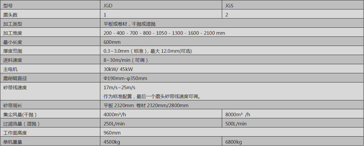 吉力佳于1995年開發(fā)的JGD短絲系列提供對金屬卷材或平板的磨砂服務,具有干拋或油拋兩種功能。該設備擁有高精度和高轉(zhuǎn)速底置磨削磨頭,即使在高速生產(chǎn)時亦可獲得穩(wěn)定完美的處理面。具有生產(chǎn)率高、配置靈活、運行維護成本低的特點。